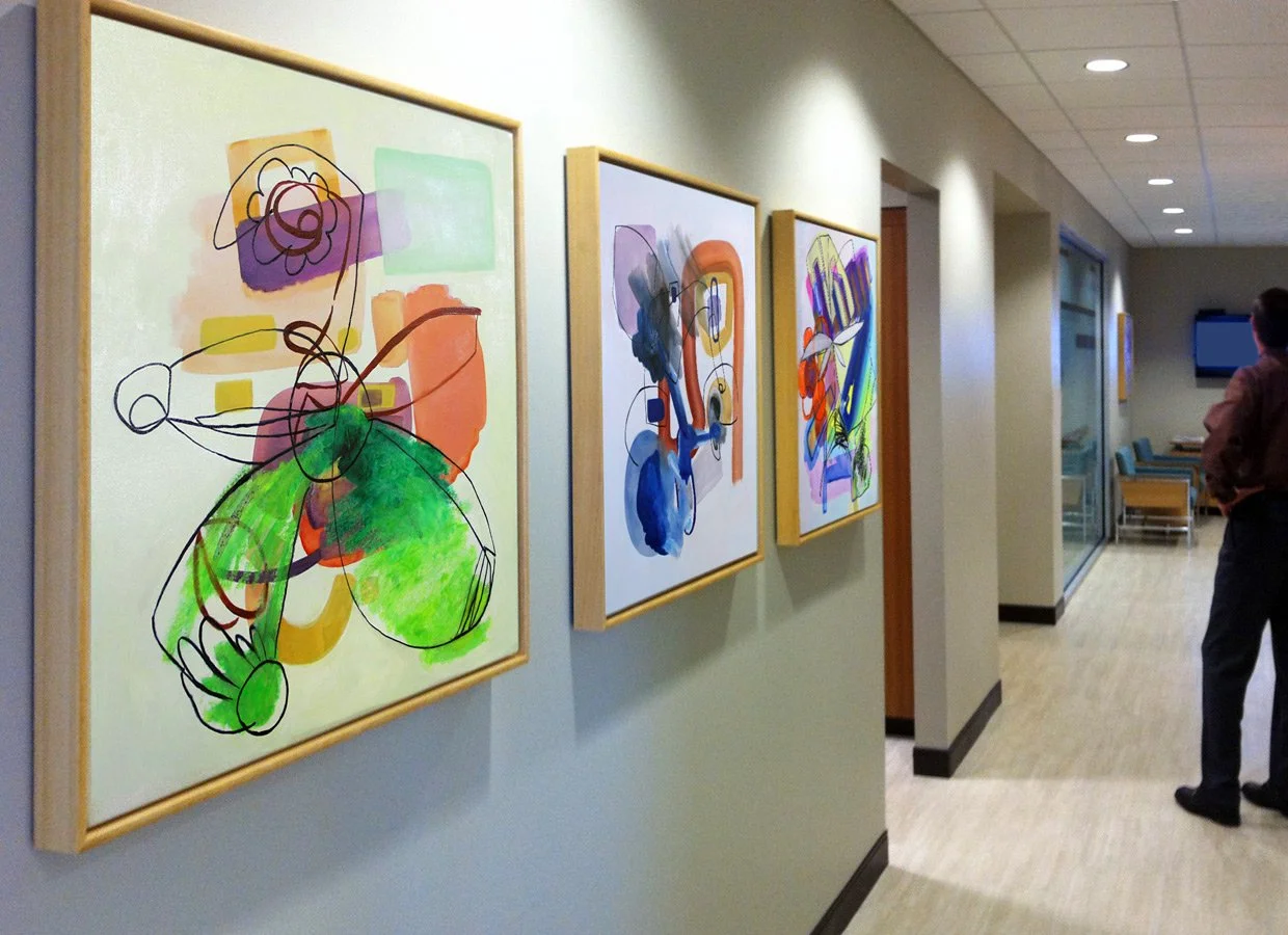 Installation view of “Modernist Studies 2, 8, and 13” (2012) oil on canvas, 30x30” each