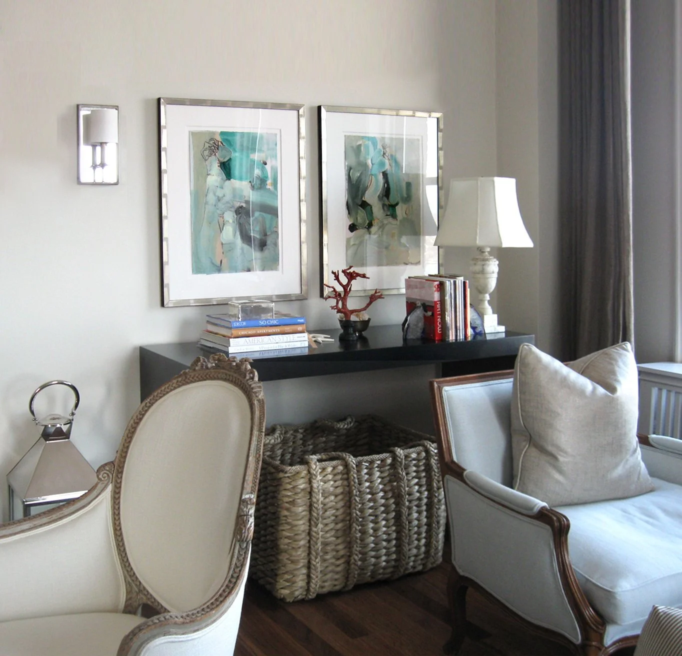 Installation view of “Stage” and “Curve” (2008) oil, charcoal, and paper collage on gessoed paper, 22x15” each, image and sheet sizes | 29x22” each, framed sizes
