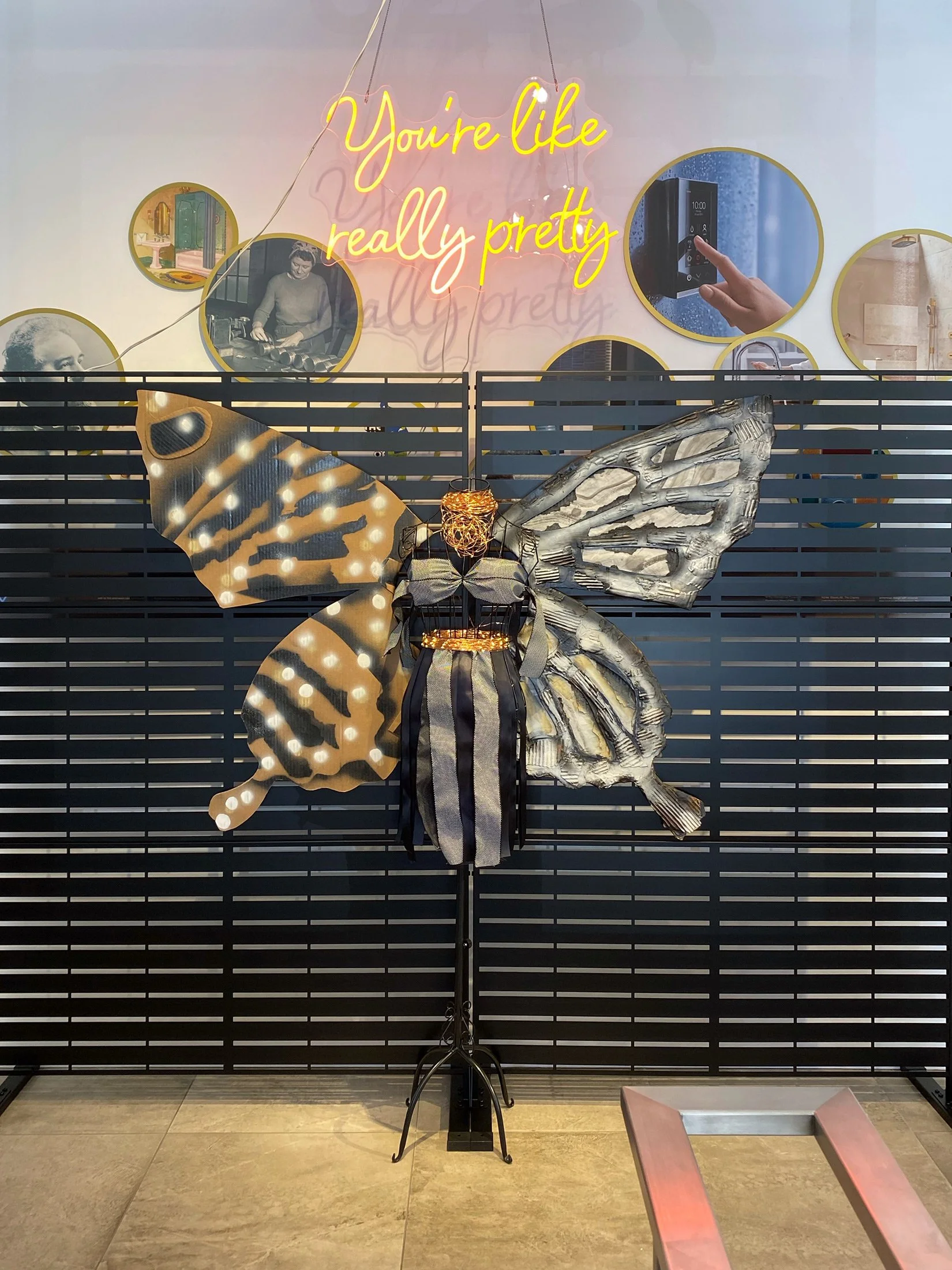 Space Flowers, wall-mounted sculpture made from recycled materials.